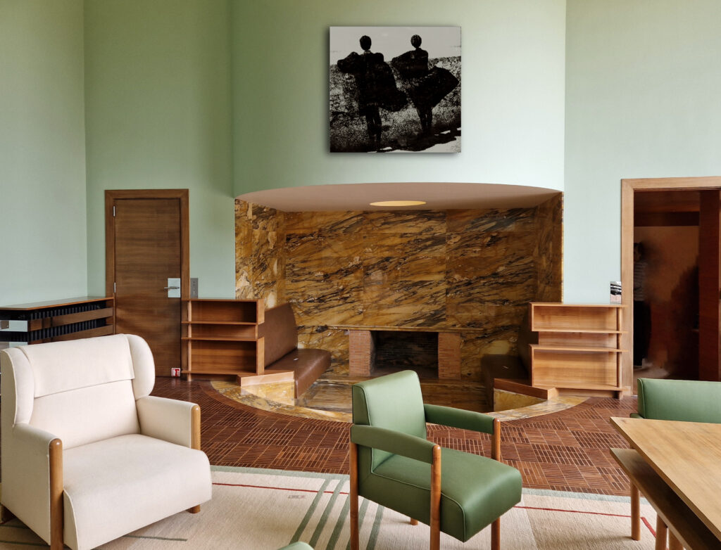 Die gezeigten Raumdarstellungen sind von mir – teilweise mit KI Unterstützung, konstruierte Bildräume. Sie beziehen sich nicht auf reale Interieurs, Designer oder Marken, sondern auf allgemeine, gesellschaftige Vorstellungen von Wohnen. Nur die Bilder sind reel existierende Gemälde, oder Fotografien.