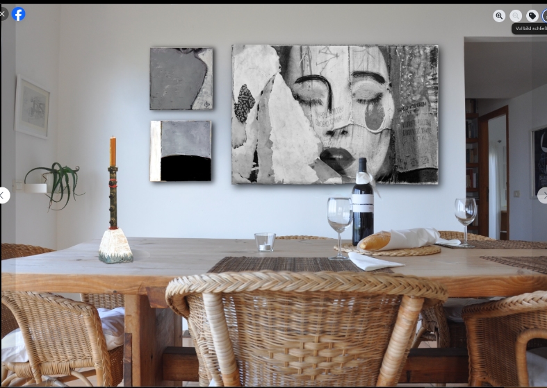 Die gezeigten Raumdarstellungen sind von mir konstruierte Bildräume. Sie beziehen sich nicht auf reale Interieurs, Designer oder Marken, sondern auf allgemeine, gesellschaftige Vorstellungen von Wohnen. Die Bilder sind reel existierende Gemälde, oder Fotografien. Größe und Technik der einzelnen Bilder findest du beim Klicken auf dem Bild – nur wenn das Bild allein abgebildet ist.